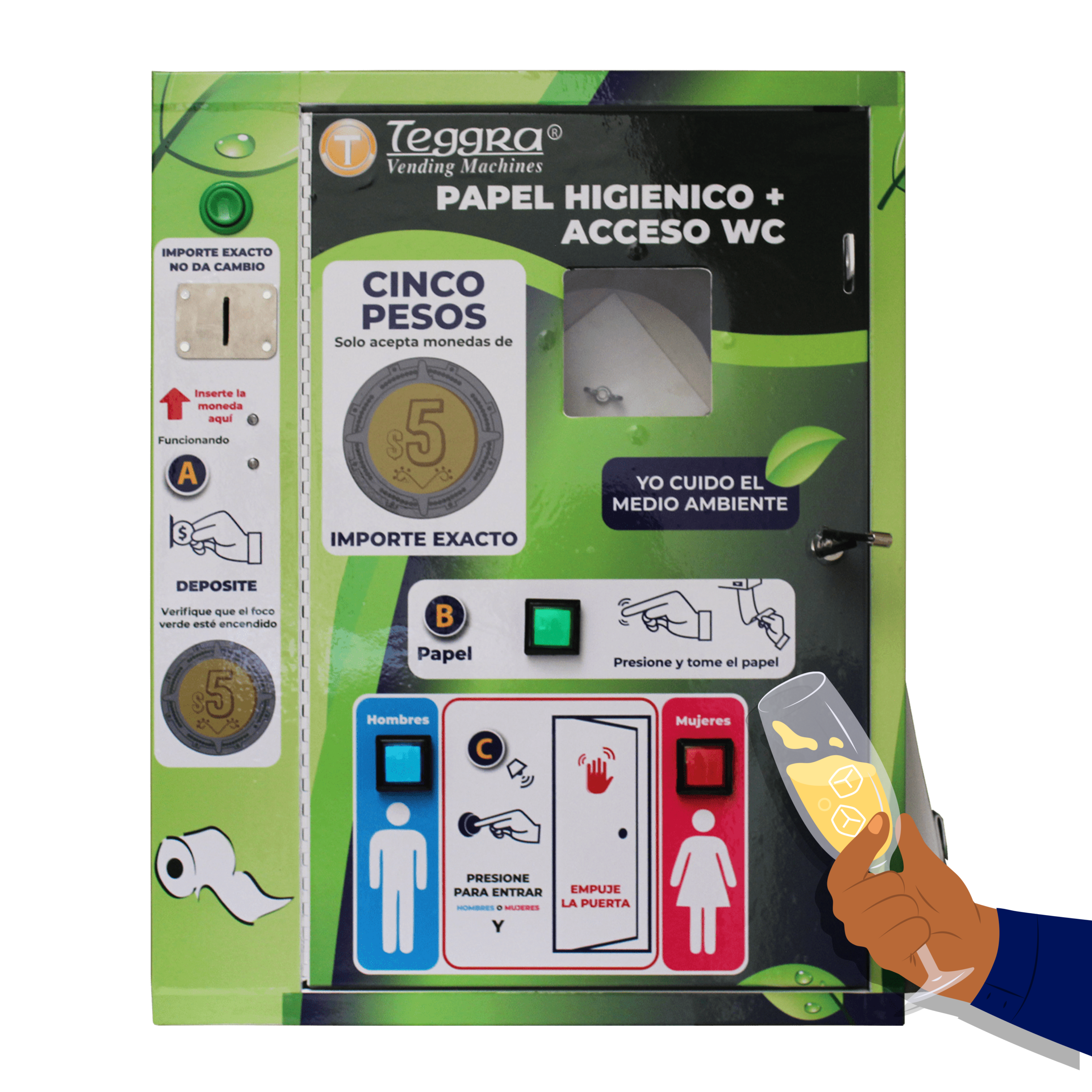 Conoce nuestra máquina combo con control de acceso y dispensador de papel higiénico.